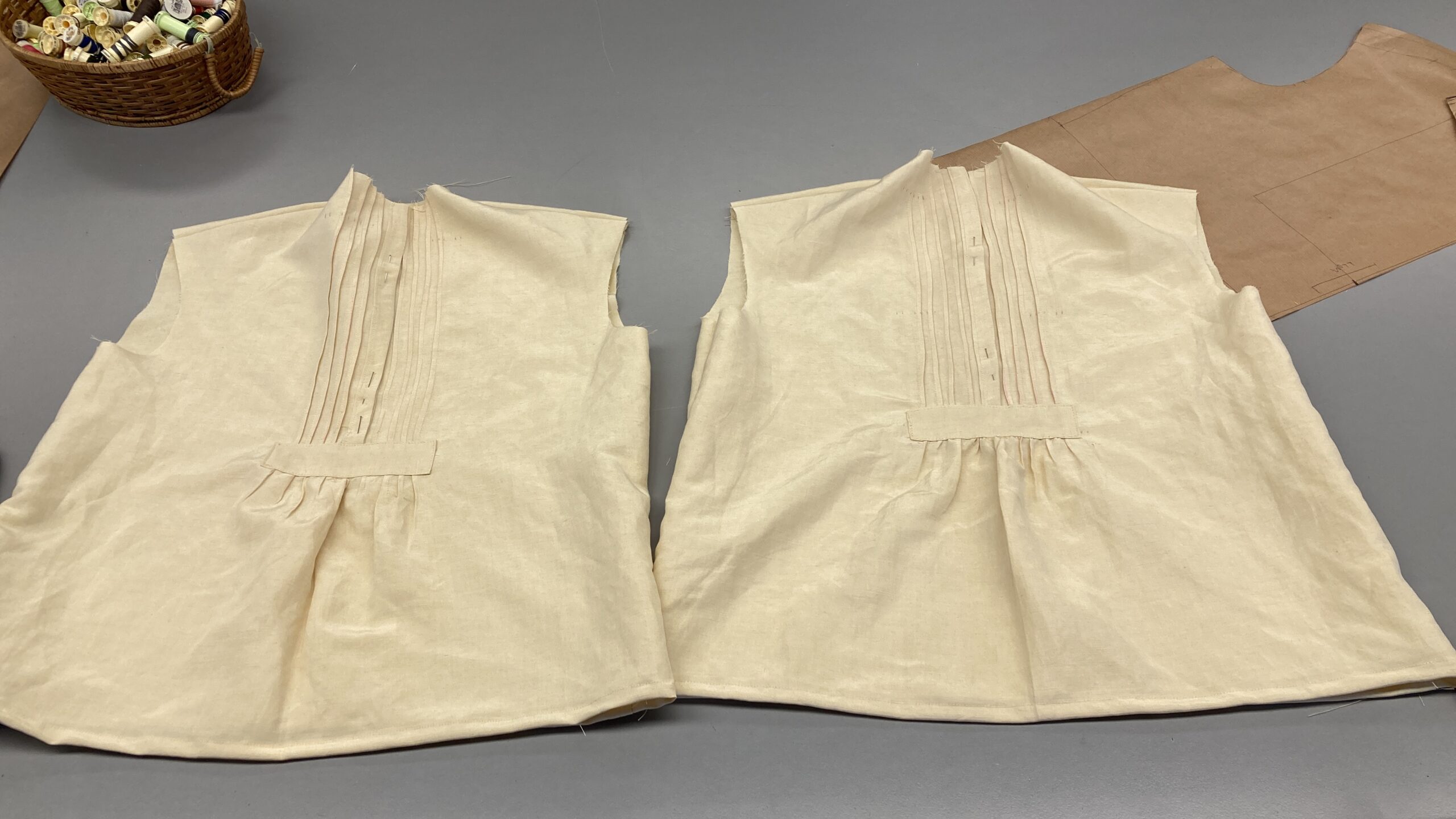 El vestuari que veureu a continuació es va confeccionar pràcticament tot des de 0, es van fer servir teixits de cotó, lli i llana, que es van tintar, tallar, teixir i cosir seguint patrons de l’època.